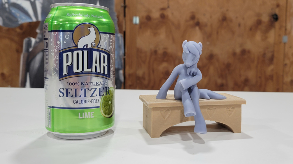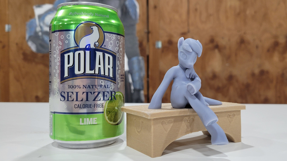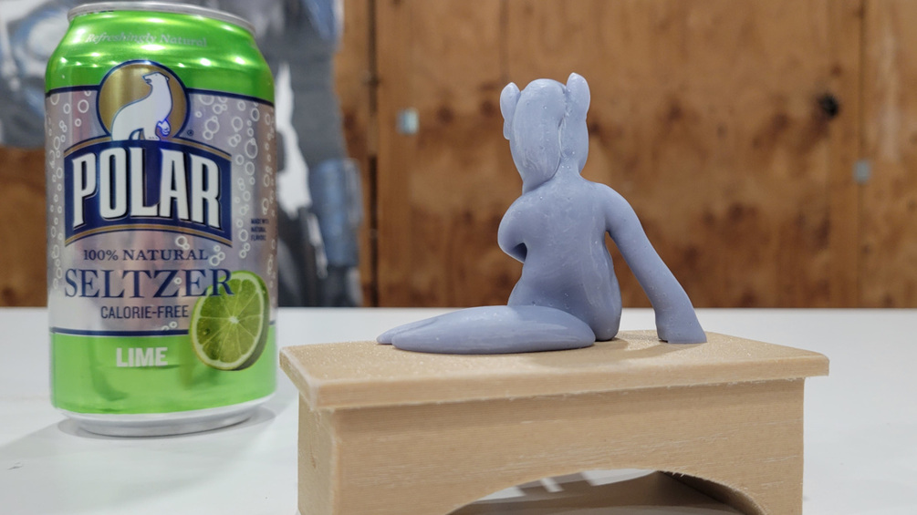 This one also includes a little teacher's desk so you can sit her on a flat surface if you want to (the figure is designed to sit on the edge of a surface.) The desk is 3D printed in a wood and PLA mixture filament.